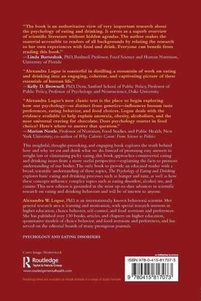 "Alexandra Logue's now classic text is the place to begin exploring how our psychology-as distinct from genetics--influences human taste preferences, eating behavior, and food choices. Logue deals with the evidence available to help explain anorexia, obesity, alcoholism, and the near universal craving for chocolate. Does psychology matter in food choice? Here's where to answer that question."--Marion Nestle, Professor of Nutrition, Food Studies, and Public Health, New York University; Co-author of Why Calories Count: From Science to Politics