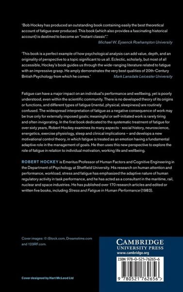 1. The problem of fatigue 2. Changing experiences of fatigue: the social-historical context 3. The work-fatigue hypothesis 4. Stress, coping and fatigue 5. Effort, strain and fatigue 6. A motivation control theory of fatigue 7. Extensions and limitations: energy, physical work and sleep 8. The psychopathology of fatigue 9. An agenda for fatigue: research and application.