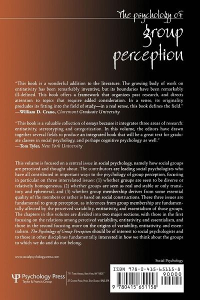 This groundbreaking work by leading social psychologists, who have all contributed in important ways to the psychology of group perception, focuses in particular on three interrelated issues: (1) whether groups are seen to be diverse or relatively homogeneous; (2) whether groups are seen as real and stable or only transitory and ephemeral; and (3) whether group membership derives from some essential quality of the members or rather is based on social constructions.