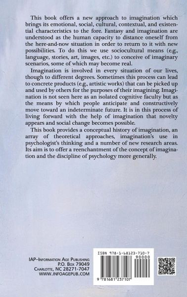 This book offers a new approach to imagination which brings its emotional, social, cultural, contextual and existential characteristics to the fore. Fantasy and imagination are understood as the human capacity to distance oneself from the here-and-now situation in order to return to it with new possibilities. To do this we use social-cultural means (e.g. language, stories, art, images, etc.) to conceive of imaginary scenarios, some of which may become real. Imagination is involved in every situation of our lives, though to different degrees. Sometimes this process can lead to concrete products (e.g., artistic works) that can be picked up and used by others for the purposes of their imagining. Imagination is not seen here as an isolated cognitive faculty but as the means by which people anticipate and constructively move towards an indeterminate future. It is in this process of living forward with the help of imagination that novelty appears and social change becomes possible. This book offers a conceptual history of imagination, an array of theoretical approaches, imagination's use in psychologist's thinking and a number of new research areas. Its aim is to offer a re-enchantment of the concept of imagination and the discipline of psychology more generally.