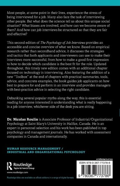 "Dr. Roulin is a respected expert on the science and practice of job interviews, and has done a great job with this book. Whereas many books rely on conjecture, The Psychology of Job Interviews relies on established scientific evidence to guide both interviewers and applicants. Critically, this work is presented in an accessible way, and this second edition highlights newer forms of interviewing and the evolution of interviews."