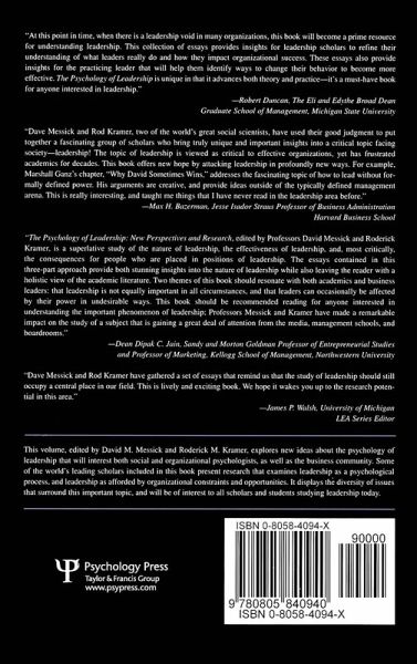 In this book, some of the world's leading scholars come together to describe their thinking and research on the topic of the psychology of leadership. Most of the chapters were originally presented as papers at a research conference held in 2001 at the Kellogg School of Management of Northwestern University. The contributions span traditional social psychological areas, as well as organizational theory; examining leadership as a psychological process and as afforded by organizational constraints and opportunities. The editors' goal was not to focus the chapters on a single approach to the study and conceptualization of leadership but rather to display the diversity of issues that surround the topic. Leadership scholars have identified a host of approaches to the study of leadership. What are the personal characteristics of leaders? What is the nature of the relation between leaders and followers? Why do we perceive some people to be better leaders than others? What are the circumstances that evoke leadership qualities in people? Can leadership be taught? And so on. The contributions to this book examine these important questions and fall into three categories: conceptions of leadership, factors that influence the effectiveness of leadership, and the consequences and effects of leadership on the leader. All in all, the chapters of this volume display part of a broad spectrum of novel and important approaches to the study of the psychology of leadership. We hope that they are equally useful to those who are or would be leaders and to those who study the topic. As recent events have served to remind us, it is too important a topic to be ignored by psychologists.