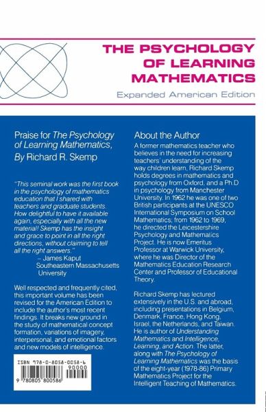 This classic text presents problems of learning and teaching mathematics from both a psychological and mathematical perspective. The Psychology of Learning Mathematics, already translated into six languages (including Chinese and Japanese), has been revised for this American Edition to include the author's most recent findings on the formation of mathematical concepts, different kinds of imagery, interpersonal and emotional factors, and a new model of intelligence. The author contends that progress in the areas of learning and teaching mathematics can only be made when such factors as the abstract and hierarchical nature of mathematics, the relation to mathematical symbolism and the distinction between intelligent learning and rote memorization are taken into account and instituted in the classroom.