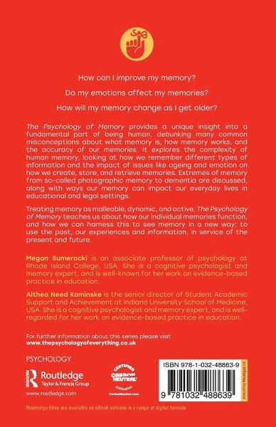 The Psychology of Memory provides a unique insight into a fundamental part of being human, debunking many common misconceptions about what memory is, how memory works, and the accuracy of our memories. It explores the complexity of human memory, looking at how we remember different types of information and the impact of issues like ageing and emotion on how we create, store, and retrieve memories. Extremes of memory from so-called photographic memory to dementia are discussed, along with ways our memory can impact our everyday lives in educational and legal settings.