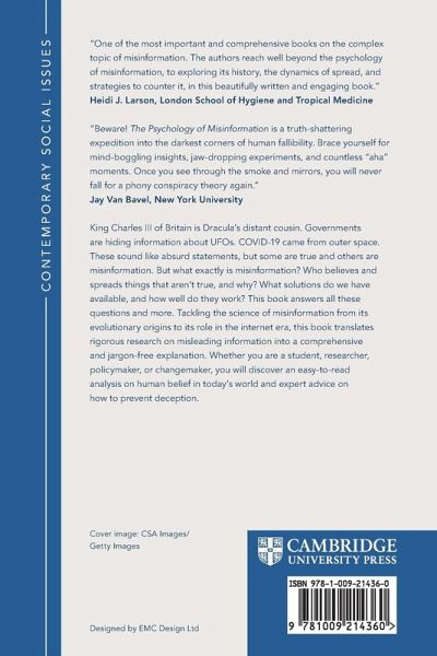 Using humorous examples and quality research, this book offers the first comprehensive, multidisciplinary analysis of why people believe and share misinformation, and if the internet has changed things. Suitable for students and researchers in psychology, politics, international relations, and sociology, as well as policymakers and changemakers.