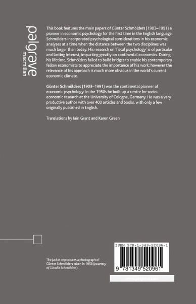 This book features the main papers of Günter Schmölders (1903-1991), a pioneer in economic psychology, for the first time in English. Schmölders' research on 'fiscal psychology' is of particular and lasting interest, impacting greatly on continental economics.