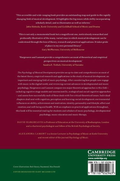 The Psychology of Musical Development provides an up-to-date and comprehensive account of the latest theory, empirical research and applications in the study of musical development, an important and emerging field of music psychology. After considering how people now engage with music in the digital world, and reviewing current advances in developmental and music psychology, Hargreaves and Lamont compare ten major theoretical approaches in this field - including cognitive stage models and neuroscientific, ecological and social cognitive approaches - and assess how successfully each of these deals with five critical theoretical issues. Individual chapters deal next with cognition, perception and learning; social development; environmental influences on ability, achievement and motivation; identity, personality and lifestyle; affect and emotion; and well-being and health. With an emphasis on practical applications throughout, this book will be essential reading for students and scholars of music psychology, developmental psychology, music education and music therapy.