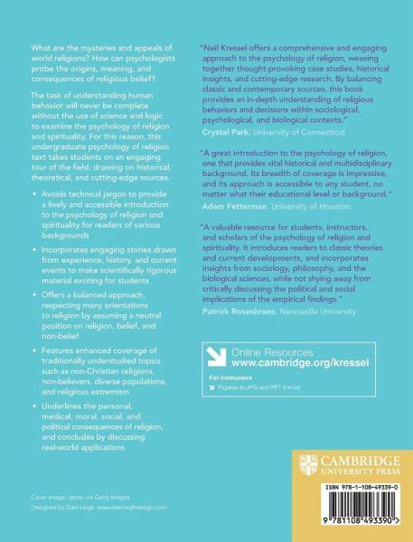The psychology of religion is an inherently exciting topic, yet most textbooks struggle to convey the vitality and significance of this field to students. Designed for undergraduate courses, this textbook uses poignant stories drawn from literature, history, and scientific case studies to provide a more effective entry point for students.