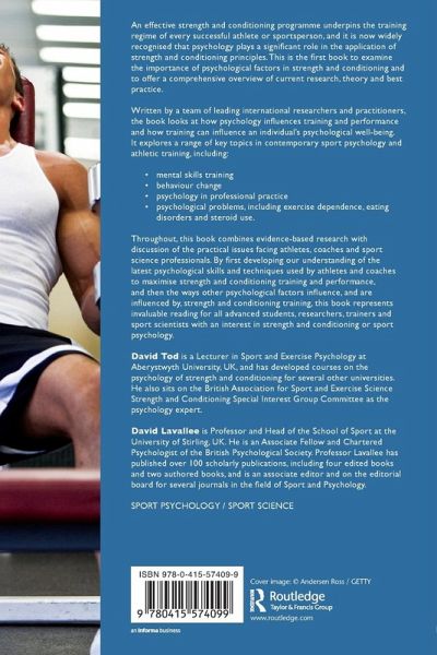 An effective strength and conditioning program underpins the training regime of every successful athlete or sportsperson and it is now widely recognized that psychology plays a significant role in the application of strength and conditioning principles. This is the first book to examine the importance of psychological factors in strength and conditioning and to offer a comprehensive overview of current research, theory and best practice. Written by a team of leading international researchers and practitioners, the book looks at how psychology influences training and performance and how training can influence an individual's psychological well-being. It explores a range of key topics in contemporary sport psychology and athletic training, including: mental skills training behaviour change psychology in professional practice psychological problems, including exercise dependence, eating disorders and steroid use. Throughout, the book combines evidence-based research with discussion of the practical issues facing athletes, coaches and sport science professionals. By firstly developing our understanding of the latest psychological skills and techniques used by athletes and coaches to maximize strength and conditioning training and performance, and then the ways other psychological factors influence, and are influenced by, strength and conditioning training, this book represents invaluable reading for all advanced students, researchers, trainers and sport scientists with an interest in strength and conditioning or sport psychology.