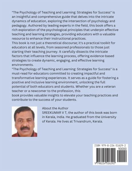 "The Psychology of Teaching and Learning: Strategies for Success" is an insightful and comprehensive guide that delves into the intricate dynamics of education, exploring the intersection of psychology and pedagogy. Authored by leading experts in the field, this book offers a rich exploration of the psychological principles that underpin effective teaching and learning strategies, providing educators with a valuable resource to enhance their instructional practices. This book is not just a theoretical discourse; it's a practical toolkit for educators at all levels, from seasoned professionals to those just starting their teaching journey. It carefully dissects the intricate factors that influence the learning process, offering evidence-based strategies to create dynamic, engaging, and effective learning environments. Key Features: Multifaceted Approach: The book covers a broad spectrum of topics, from understanding cognitive processes and motivation to exploring the social dynamics of the classroom. It provides a holistic view of the psychological aspects that shape the teaching and learning experience. Practical Strategies: Grounded in empirical research and real-world applications, the book goes beyond theory to offer practical strategies that educators can implement immediately. Each chapter provides actionable insights and evidence-based techniques to address the challenges faced in diverse educational settings. Case Studies: Rich case studies illustrate the successful implementation of the strategies discussed in various educational contexts. These real-world examples provide inspiration and guidance for educators looking to enhance their teaching methodologies. Interdisciplinary Insights: Drawing on insights from psychology, neuroscience, and education research, the book integrates interdisciplinary perspectives. It bridges the gap between academic theory and classroom practice, making it relevant for educators across different disciplines. Emerging Trends: The book explores emerging trends in education, including the impact of technology, the importance of emotional intelligence, and the design of optimal learning spaces. It equips educators to navigate the evolving landscape of teaching and learning. Accessible Language: Written in an accessible and engaging style, the book is suitable for educators, administrators, and anyone interested in the art and science of teaching. Complex psychological concepts are presented in a manner that is approachable and applicable to a wide audience. "The Psychology of Teaching and Learning: Strategies for Success" is a must-read for educators committed to creating impactful and transformative learning experiences. It serves as a guide for fostering a positive and inclusive learning environment, unlocking the full potential of both educators and students. Whether you are a veteran teacher or a newcomer to the profession, this book provides valuable insights to elevate your teaching practices and contribute to the success of your students.