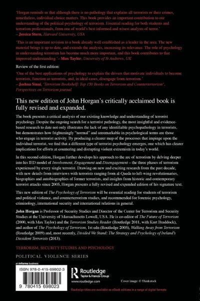 'John Horgan's The Psychology of Terrorism is one of the best applications of a social science discipline (in this case, psychology) to explain the drivers that motivate individuals to become terrorists, function as terrorists, and, in ideal cases, disengage from terrorism. Also included are some of the best treatments in the academic literature on how to define terrorism and conduct academic research on terrorism.' - Foreword Magazine