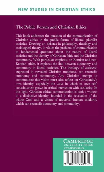 This book addresses the question of the communication of Christian ethics in the public forum of liberal, pluralist societies. Drawing on debates in philosophy, theology and sociological theory, it relates the problem of communication to fundamental questions about the nature of liberal societies and the identity of Christian faith and the Christian community. With particular emphasis on Kantian and neo-Kantian ethics, it explores the link between autonomy and community in liberal societies. The theology of communio, expressed in revealed Christian traditions, can reconcile autonomy and community. Any Christian attempt to communicate this vision must also reflect on Christianity's own identity, especially the ways in which its own self-consciousness grows in critical interaction with secularity. In this light, Christian ethical communication is both a witness to a distinctive identity, founded in the revelation of the triune God, and a vision of universal human solidarity which can reconcile autonomy and community.