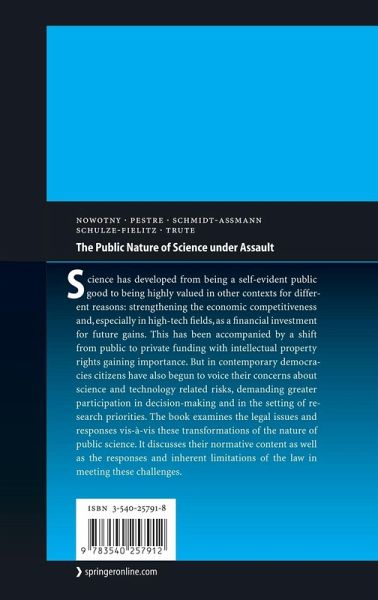 Science has development from a self-evident public good to being highly valued in other contexts for different reasons: strengthening the economic competitiveness and, especially in high-tech fields, as a financial investment for future gains. This has been accompanied by a shift from public to private funding with intellectual property rights gaining importance. But in contemporary democracies citizens have also begun to voice their concerns about science and technology related risks, demanding greater participation in decision-making and in the setting of research priorities. The book examines the legal issues and responses vis-à-vis these transformations of the nature of public science. It discusses their normative content as well as the inherent limitations of the law in meeting these challenges.