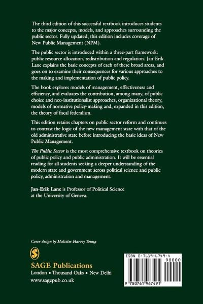 The Third Edition of this successful textbook introduces students to the major concepts, models, and approaches surrounding the public sector. Now fully updated to include coverage of the New Public Management (NPM), The Public Sector is the most comprehensive textbook on theories of public policy and public administration. The Public Sector is introduced within a three-part framework: public resource allocation, redistribution and regulation. Jan-Erik Lane explains the basic concepts of each of these broad areas, and goes on to examine their consequences for various approaches to the making and implementation of public policy. The book explores models of management, effectiveness and efficiency, and evaluates the contribution, among many, of public choice and neo-institutionalist approaches, organizational theory, models of normative policy-making and, expanded in this edition, the theory of fiscal federalism. The New Edition retains chapters on public sector reform and continues to contrast the logic of the new management state with that of the old administrative state before introducing the basic ideas of New Public Management. The Public Sector will be essential reading to all students seeking a deeper understanding of the modern state and government across political science and public policy, administration and management.