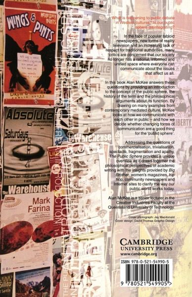 What is happening to public debate in Western cultures? Is our public sphere disintegrating? In the face of popular tabloid newspapers, new forms of reality television and an increasing lack of respect for traditional authorities, many critics are concerned that our society no longer has a rational, informed and unified space where everyone can communicate about the issues that affect us all. In this book Alan McKee answers these questions by providing an introduction to the concept of the public sphere, the history of the term and the philosophical arguments about its function. By drawing on many examples from contemporary mediated culture, McKee looks at how we communicate with each other in public - and how we decide whether changing forms of communication are a good thing for the 'public sphere'.
