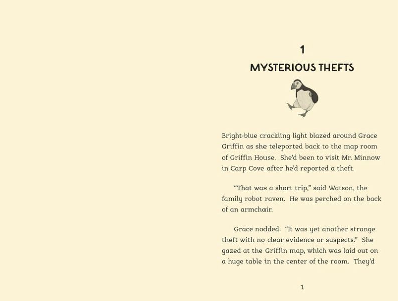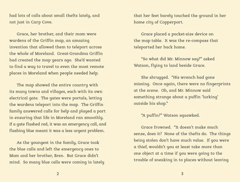"The weirder this mystery gets," said Grace, "the more determined I am to solve it . . ." Newly qualified warden Grace Griffin is excited to be using the amazing teleport technology of the Griffin map to travel throughout Moreland fighting crime. But her first mission, investigating a series of petty thefts, is proving to be a bit of a puzzle. Who would steal a jar of jam, or a spanner, or a tin of machine oil? And why do all the reports mention the sighting of a bird at the scene of the robbery? When the clues finally lead to a ramshackle castle on a lonely island, Grace might find more than just a thief . . .