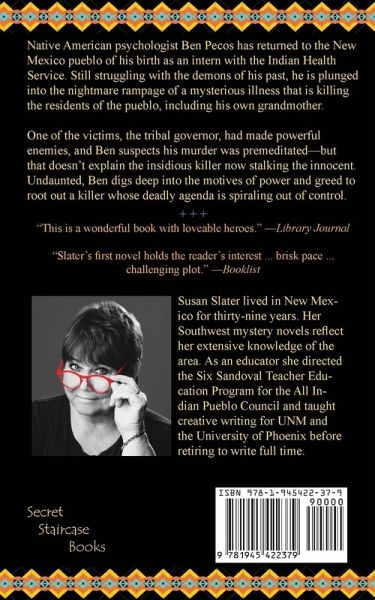 Native American psychologist Ben Pecos has returned to the New Mexico pueblo of his birth as an intern with the Indian Health Service. Still struggling with the demons of his past, he is plunged into the nightmare rampage of a mysterious illness that is killing the residents of the pueblo, including his own grandmother. One of the victims, the powerful tribal governor, had made powerful enemies, and Ben suspects his murder was premeditated—but that doesn't explain the insidious killer now stalking the innocent. Undaunted, Ben digs deep into the motives of power and greed to root out a killer whose deadly agenda is spiraling out of control. Newly edited edition. Praise for The Pumpkin Seed Massacre: "… a gripping novel." –Tony Hillerman "This is a wonderful book with loveable heroes." –Library Journal "… Ben Pecos—raised far from New Mexico’s Tewa Pueblo—could become as lasting a fictional presence as Joe Leaphorn and Jim Chee." – Chicago Tribune "Solid characters, fascinating atmosphere, and authentic setting—The Pumpkin Seed Massacre is a book you will enjoy. Ben Pecos is a star in the detective firmament. I predict a big future for Susan Slater." – Barbara D’Amato "Slater’s first novel holds the reader’s interest with its brisk pace, well-rendered New Mexico landscape and challenging plot … [T]his promising first novel heralds a series to watch." –Booklist