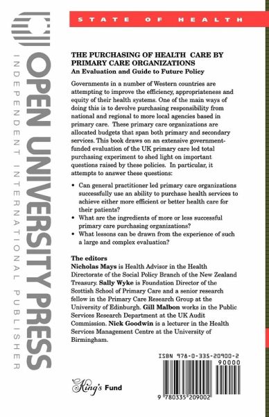 Governments in a number of Western countries are attempting to improve the efficiency, appropriateness and equity of their health systems. One of the main ways of doing this is to devolve purchasing responsibility from national and regional to more local agencies based in primary care. These primary care organisations are allocated budgets that span both primary and secondary services. This book draws on an extensive government-funded evaluation of the UK primary care led total purchasing experiment to shed light on important questions raised by these policies. In particular, it attempts to answer these questions: * Can general practitioner led primary care organisations successfully use an ability to purchase health services to achieve either more efficient or better health care for their patients? * What are the ingredients of more or less successful primary care purchasing organisations? * What lessons can be drawn from the experience of such a large and complex evaluation?