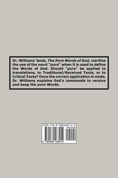 Dr. Williams' book, The Pure Words of God, clarifies the use of the word "pure" when it is used to define the Words of God. Should "pure" be applied to translations, to Traditional/Received Texts, or to Critical Texts? Once the correct application is made, Dr. Williams explains God's commands to receive and keep His pure Words.