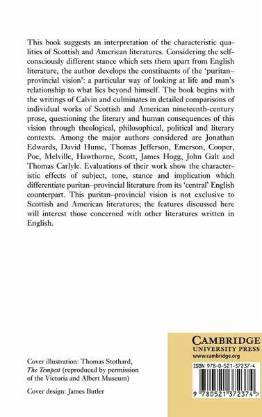 This book suggests an interpretation of the characteristic qualities of Scottish and American literatures. Considering the self-consciously different stance which sets them apart from English literature, the author develops the constituents of the 'puritan-provincial vision': a particular way of looking at life and man's relationship to what lies beyond himself. The book begins with the writings of Calvin and culminates in detailed comparisons of individual works of Scottish and American nineteenth-century prose, questioning the literary and human consequences of this vision through theological, philosophical, political and literary contexts. This puritan-provincial vision is not exclusive to Scottish and American literature so the features discussed here will interest those concerned with other literatures written in English.