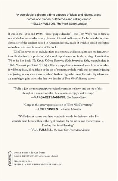 The essential collection of Tom Wolfe's writing on a turning-point era in modern American culture, newly repackaged and reissued with the original introduction by Joe David Bellamy. It was in the 1960s and 1970s-those "purple decades"-that Tom Wolfe rose to fame as one of the late-twentieth-century pioneers of American literature. He became the foremost chronicler of the gaudiest period in American history, much of which is spread out before us in these selections from nine of his books. Wolfe's innovations in style, his feats as a reporter, and his insights into modern American life dominated a period of widespread experimentation in the writing of nonfiction. Wolfe's contributions to the language of the purple decades range from the phrases "the right stuff" to "radical chic," the latter of which he coined in 1970, when Leonard Bernstein gave a party for the Black Panthers in his apartment on Park Avenue; and on to "the Me Decade," as the 1970s were dubbed as soon as Wolfe's essay "The Me Decade and the Third Great Awakening" appeared in 1976. The complete texts of "The Last American Hero" and "The Me Decade and the Third Great Awakening," and long sections of "Radical Chic" and The Right Stuff, are included here in The Purple Decades. Wolfe's long piece "Mau-Mauing the Flak Catchers" (included here in its entirety) provided the first insider's view of that bizarre government-sponsored rebellion known as the poverty program. Another long piece called "The Truest Sport: Jousting with Sam and Charlie" (also complete here) has become a classic work on aerial combat in Vietnam as experienced by the pilots themselves. His 1968 book The Electric Kool-Aid Acid Test (two chapters of which appear in these pages) is recognized as the major book on the hippie movement of the 1960s. Generous selections from both From Bauhaus to Our House and The Painted Word also appear here, as well as many stories from The Kandy-Kolored Tangerine-Flake Streamline Baby, The Pump House Gang, and Mauve Gloves & Madmen, Clutter & Vine. When Tom Wolfe's first book, The Kandy-Kolored Tangerine-Flake Streamline Baby, was published in 1965, Newsweek predicted: "This will be a sharp pleasure to reread years from now, when it will bring back, like a falcon in the sky of memory, a whole world that is currently jetting and jazzing its way somewhere or other." In these pages the falcon flies with big talons, and an even bigger grin, across the first two decades of Tom Wolfe's literary career.