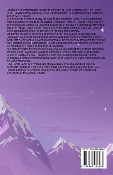 "The Purple Land: Richard Lamb's Odyssey in the Banda Orientál" by W. H. Hudson, also known as Guillermo Enrique Hudson in Argentina, debuted in 1885, offering a captivating narrative that intertwines adventure, romance, and self-discovery. Follow the escapades of Richard Lamb, a spirited Englishman who embarks on a journey to the heart of South America, braving the unknowns of the Banda Orientál. In a daring move, Lamb weds Paquita, a vivacious Argentinian maiden, against the wishes of her father. Fleeing to Montevideo, Uruguay, with his youthful bride, Lamb navigates the complexities of newfound love and cultural clashes. Entrusting Paquita to the care of a relative, Lamb sets off to seek employment in the untamed eastern reaches of Uruguay. Along the rugged path, Lamb is drawn into a whirlwind of encounters with Uruguayan gauchos, entangled in passionate liaisons with local women, and inadvertently swept into the orbit of a rebel guerrilla general seeking freedom. As political unrest simmers and revolutions loom on the horizon, Lamb finds himself immersed in the tumultuous currents of South American life. Through a series of gripping escapades, Lamb's preconceived notions of British superiority unravel, replaced by a deep appreciation for the land and its people. In the throes of adventure and adversity, Lamb undergoes a profound transformation, discovering unexpected facets of himself amidst the vibrant tapestry of South American existence. "The Purple Land" is a timeless tale of exploration, love, and the quest for identity, inviting readers to journey alongside Richard Lamb as he navigates the colorful landscapes of the Banda Orientál and the depths of his own soul.