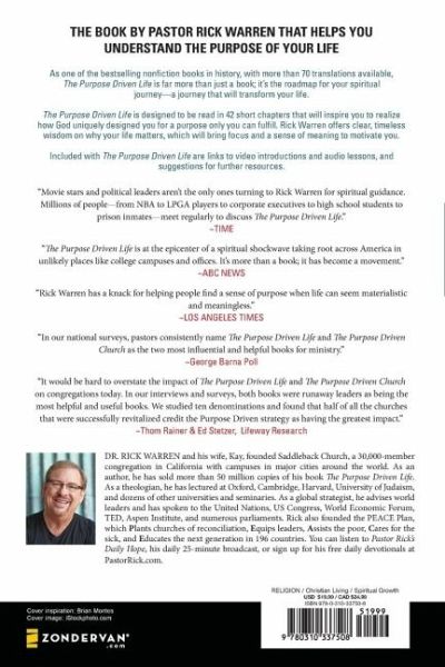 Introducing an expanded edition of the 1 international bestseller, The Purpose Driven Life now includes two bonus chapters. This spiritual journey will transform your answer to lifeà â â s most important question: What on earth am I here for? Simplify your life, increase your motivation, discover Godà â â s amazing plan for you both now and for eternity.