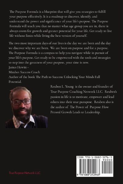 The Purpose Formula is a blueprint that will give you strategies to fulfill your purpose effectively. It is a roadmap to discover, identify, and understand the power and significance of your life's purpose. The Purpose Formula will teach you that no matter what age group you are in, there is always room for growth and greater potential for your life. Get ready to live life without limits while living the best version of yourself.