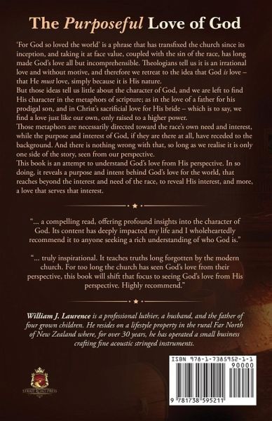 'For God so loved the world' is a phrase that has transfixed the church since its inception, and taking it at face value, coupled with the sin of the race, has long made God's love all but incomprehensible. Theologians tell us it is an irrational love, and without motive, and therefore we retreat to the idea that God is love - that He must love, simply because it is His nature.But those ideas tell us little about the character of God, and we are left to find His character in the metaphors of scripture; as in the love of a father for his prodigal son, and in Christ's sacrificial love for His bride - which is to say, we find a love just like our own, only raised to a higher power.Those metaphors are necessarily directed toward the race's own need and interest, while the purpose and interest of God, if they are there at all, have receded into the background. And there is nothing wrong with that, so long as we realise it is only one side of the story, seen from our perspective.This book is an attempt to understand God's love from His perspective. In so doing, it reveals a purpose and intent behind God's love for the world, that reaches beyond the interest and need of the race, to reveal His interest, and more, a love that serves that interest.