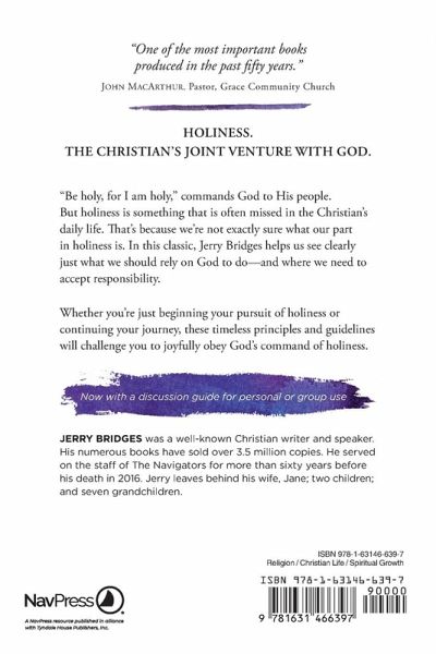 This new edition replaces both The Pursuit of Holiness (ISBN 9781576839324) and the study guide (ISBN 9781576839881) by combining both resources into one volume! "Be holy, for I am holy," commands God. But holiness is something that is often missed in the Christian's daily life. According to Navigator author Jerry Bridges, that's because we're not exactly sure what our part in holiness is. In The Pursuit of Holiness, he helps us see clearly just what we should rely on God to do-and what we should take responsibility for ourselves. As you deepen your relationship with God, learn more about His character, and understand the Holy Spirit's role in holiness, your spiritual growth will mature. The included study guide contains 12 lessons.
