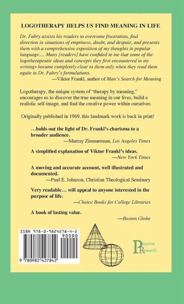 Contains the essence of the logotherapeutic writings of Viktor Frankl, who noted that many readers report that they understand some parts of logotherapy for the first time after reading this book. Fabry wrote in the introduction: Many older therapies place responsibility for our difficulties on our early upbringing. Logotherapy is "education to responsibility." Outside influences are important but not all-determining. Within limitations we have a say about who we are and who we want to become. We need never let ourselves be reduced to helpless victims. Consequently, logotherapy-unlike therapies that aim at equilibrium by adjusting patients to society-does not see a tensionless life as a therapeutic goal. Tension is part of living as a human being in a human society. To remain healthy, the unhealthy tensions of body and psyche are to be avoided. But the healthy tension of the spirit strengthens our spiritual muscles. The healthiest tension is between what we are and what we have the vision of growing toward, or, to use Frankl's favorite phrase, "the tension between being and meaning" (Psychotherapy and Existentialism, p. 10). The struggle for meaning is not easy. Life does not owe us pleasure; it does offer us meaning. Mental health does not come to those who demand happiness but to those who find meanings; to them happiness comes as a side product. "It must ensue" noted Frankl. "It cannot be pursued" (Unconscious God, p. 85). Logotherapy maintains and restores mental health by providing a sound view of the human being and the world as we know it. It draws on the huge reservoir of health stored in our specifically human dimension-our creativity, our capacity to love, our reaching out to others, our desire to be useful, our ability to orient to goals, and our will to meaning. Logophilosophy emphasizes what is right with us, what we like about ourselves, our accomplishments, and our peak experiences. It also considers the qualities we dislike so we may change them, our failures so we can learn from them, our abysses so we may lift ourselves up, knowing that peaks exist and can be reached.