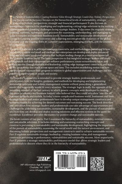 The Pursuit of Sustainability: Creating Business Value through Strategic Leadership, Holistic Perspectives, and Exceptional Performance focuses on the hierarchical levels of sustainability, strategic leadership, holistic perspectives, strategic and financial performance. It also focuses on management constructs for developing and implementing cutting-edge solutions to the exciting opportunities and daunting challenges facing strategic leaders. It discusses the requisite strategic thinking, methods, techniques, and practices for examining, understanding, and managing in today's complex and turbulent business world. Sustainability and sustainable development are critical for creating positive outcomes and achieving success given the dynamics of the global economy and the ongoing shifts in customer expectations, emerging markets, and the intensity of competition. The aim of the book is to articulate concepts, constructs, and methodologies pertaining to how global corporations and small and medium size enterprises can develop and deploy enhanced solutions and more integrated systems that facilitate leading change in a more interconnected and dynamic business world. The basic perspective is that insightful strategic leaders and astute professionals and their companies can enhance performance, create extraordinary value, and sustain success through sophisticated leadership, cutting-edge management constructs, and state-of-the-art systems that reach across space and time. This includes establishing metrics on how companies can measure their progress in relation to global opportunities and challenges and the needs and expectations of people and society. The book is intended to provide strategic leaders, professionals, and practitioners with the insights, guidance, and methods for developing and implementing sustainable solutions and holistic management systems without prescribing a generalized model that supposedly would fit every situation. The strategic logic is really the opposite of the prevailing mindset of the last century in which generic concepts were developed by leading theorists (academics and business leaders) who believed that they could articulate "one-fits-all" business methods and models. In today's more complicated business world, businesses and their strategic leaders and senior professionals have to develop unique management constructs and business models for achieving the desired outcomes and sustaining success. The book describes and articulates how strategic leaders and professionals can take advantage of opportunities and challenges by addressing sustainability, sustainable development, and the pursuit of sustainability and how they can develop and deploy exciting solutions and effective systems in the quest for excellence. Excellence provides the mantra for positive change and sustainable success. The book consists of two parts. Part I examines the hierarchy of sustainability, external context, and sustainable solutions. It includes defining and examining overarching concepts and constructs pertaining to sustainability and sustainable development, highlighting the importance of the pursuit of sustainability, examining the social world and the natural environment, and discussing holistic perspectives and management constructs used to achieve sustainable success. Part II explores sustainable strategic leadership, creating business value, and management constructs pertaining to performance, vulnerabilities and sustainable success. Most importantly, Part II presents a strategic sustainability performance model that allows strategic leaders and professionals to discern where they fit in the hierarchy of sustainability.