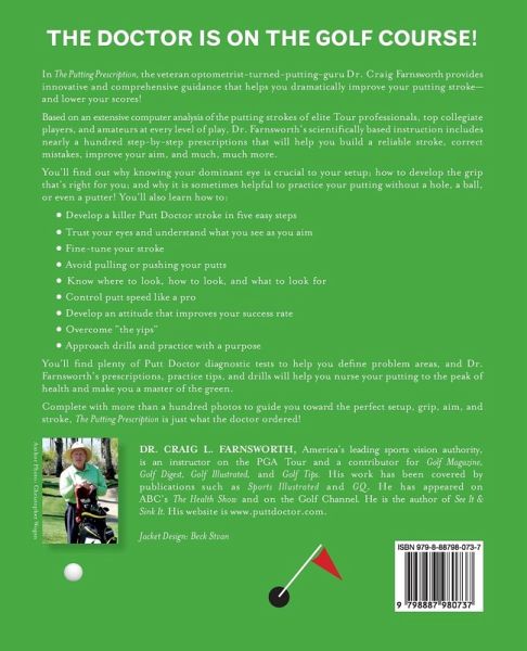 The Putting Prescription The Putt Doctor's Proven Method for a Better Stroke Dr. Craig L. Farnsworth Author of See It & Sink It The doctor is on the golf course! Dr. Craig Farnsworth has helped more than 125 Tour pros improve their putting games from good to outstanding. Now, you can raise the level of your game using the same innovative techniques that have helped Nick Faldo, Annika Söouml;renstam, Bernhard Langer, and many others become masters of the green. Whether you suffer from sloppy setup, tight grip, pushing, pulling, or "the yips," The Putting Prescription will cure what ails you!