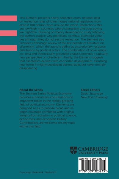 This Element presents newly-collected cross-national data on reelection rates of lower house national legislators from almost 100 democracies around the world. It suggests that clientelism evolves with economic development, assuming new forms in highly developed democracies but never entirely disappearing.