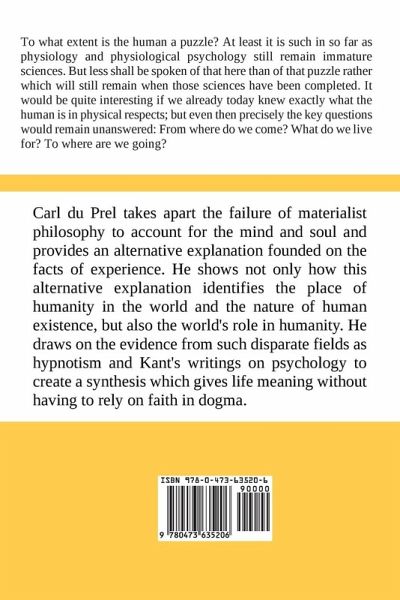 Carl du Prel takes apart the failure of materialist philosophy to account for the mind and soul and provides an alternative explanation founded on the facts of experience. He shows not only how this alternative explanation identifies the place of humanity in the world and the nature of human existence, but also the world's role in humanity. He draws on the evidence from such disparate fields as hypnotism and Kant's writings on psychology to create a synthesis which gives meaning to life without having to rely on faith in dogma.