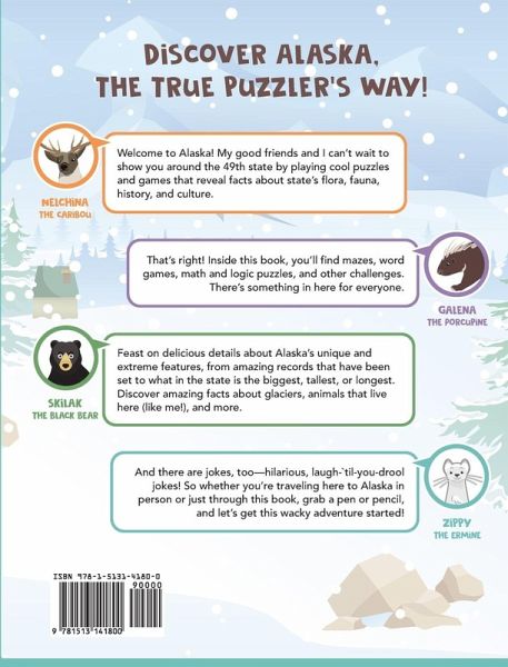 With 60 puzzles to delight curious minds, The Puzzler's Guide to Alaska is an interactive introduction to the 49th state for kids 8 and up that's one part puzzle book, one part natural history guide-and lots and lots of fun! Meet Nelchina the Caribou, Galena the Porcupine, Zippy the Short-tailed Weasel, and Skilak the Black Bear-four good friends who can't wait to show you around the beautiful state of Alaska. In this book they introduce all kinds of puzzles and games while telling jokes and sharing trivia about Alaska. Learn about the official state symbols, its biggest features, why Alaska's called the Land of the Midnight Sun, the animals that live here, glaciers, and much more. The puzzles mix a variety of STEAM (science, technology, engineering, arts, math) challenges to exercise different parts of the brain, including mazes, logic and math reasoning, crosswords, word searches, and language codes. When solved, the puzzles' answers (at the back of the book) reveal facts about Alaska's flora, fauna, history, and culture. Perfect for long drives, plane or train rides, meals, and other slow times, The Puzzler's Guide to Alaska keeps young puzzlers occupied and engaged with all things Alaska. So grab a pen or pencil and get ready to travel to Alaska, the true puzzler's way!