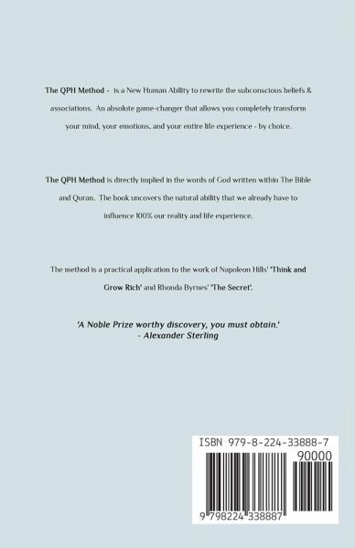 Discover a NEW Method to Change Subconscious Beliefs Do you want to change what you experience in life? Do you want to improve the life you have right now? Your mindset is the first step, which determines - how you see yourself, how you see the world and how you will feel about it. When you don't have weakness in your mind, intrusive thoughts, negative emotions can't act as barriers between where you are and where you want to be. Discover how you can gain conscious control of your mind, which creates your life this very second and begin to see the world change all around you, from day one. The QPH Method - is a New Human Ability to Rewrite The Subconscious Beliefs. A place where all thoughts, perceptions and feelings create your reality. It's an absolute game-changer that lets you completely and PRACTICALY rewrite your life and emotions - with the speed of a decision. Inside you will discover a New 2-Minute Method, which is backed by Science of Psychology, Physiology and Physics, proven to work 100% of the time.Inside the book you'll discover how you can use this new method to: Rewrite your beliefs, control your thoughts, emotions and habits Beat anxiety, pain, fear and self-doubt Enhance self-image, confidence, self-esteem and personal power to the max Overcome procrastination and maximize motivation Find purpose, happiness and fulfillment. Change your past memories of experience (eliminate invisible barriers & trauma) See change from day one - with permanent results. *The QPH Method can help with - self-confidence, self-esteem, self-acceptance, self-love, self-sufficiency (all powerful self-qualities of how you feel and see yourself); motivation, procrastination, happiness, to overcome past trauma, depression, sadness, social anxiety, worry, barriers, worrying about what other people think, weaknesses, lack, pain, fear, shame, guilt, anxiety, worry, mind-wandering, depression, grief, trauma, negative feelings of undesired situation. *The book is not about about affirmations, imagination, meditation or other woo woo like methods. It promises real, proven transformative change, based on scientific principles - that are always working.