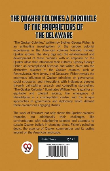"The Quaker Colonies," written by Sydney George Fisher, is an enthralling investigation of the unique colonial experiences in the American colonies founded through Quaker settlers. The story digs into the establishment and development of these colonies, with an emphasis on the Quaker ideas that influenced their cultures. Sydney George Fisher, an accomplished historian and writer, dives into the distinctive qualities of the Quaker colonies, such as Pennsylvania, New Jersey, and Delaware. Fisher reveals the enormous influence of Quaker principles on governance, social structures, and interactions with indigenous peoples through painstaking research and compelling storytelling. "The Quaker Colonies" illuminates William Penn's goal for an equitable and tolerant society, the emergence of Philadelphia as a cosmopolitan centre, and the unique approaches to governance and diplomacy which defined these colonies via engaging stories. The work of literature not only shows the Quaker colonies' triumphs, but additionally their challenges, like confrontations with neighboring colonies and attempts to sustain Quaker beliefs in changing times. Fisher's paintings depict the essence of Quaker communities and its lasting imprint on the American landscape.