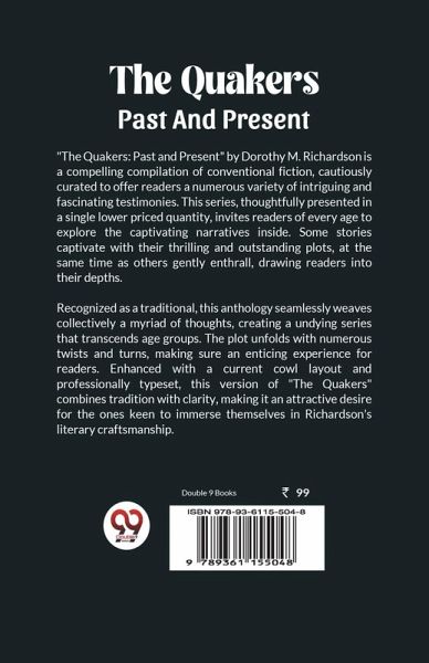 "The Quakers: Past and Present" by Dorothy M. Richardson is a compelling compilation of conventional fiction, cautiously curated to offer readers a numerous variety of intriguing and fascinating testimonies. This series, thoughtfully presented in a single lower priced quantity, invites readers of every age to explore the captivating narratives inside. Some stories captivate with their thrilling and outstanding plots, at the same time as others gently enthrall, drawing readers into their depths. Recognized as a traditional, this anthology seamlessly weaves collectively a myriad of thoughts, creating a undying series that transcends age groups. The plot unfolds with numerous twists and turns, making sure an enticing experience for readers. Enhanced with a current cowl layout and professionally typeset, this version of "The Quakers" combines tradition with clarity, making it an attractive desire for the ones keen to immerse themselves in Richardson's literary craftsmanship.