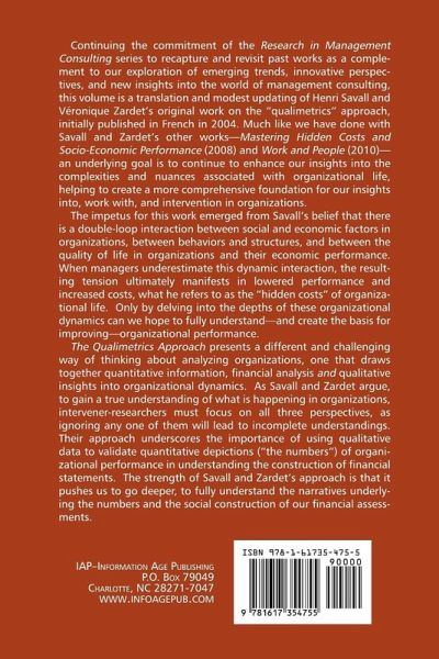 Edited by Henri Savall and Véronique Zardet, Institut de Socio-Economie des Entreprises et des Organisations A volume in Research in Management Consulting Series Editor Anthony F. Buono, Bentley University The impetus for this work emerged from Savall's belief that there is a doubleloop interaction between social and economic factors in organizations, between behaviors and structures, and between the quality of life in organizations and their economic performance. When managers underestimate this dynamic interaction, the resulting tension ultimately manifests in lowered performance and increased costs, what he refers to as the "hidden costs" of organizational life. Only by delving into the depths of these organizational dynamics can we hope to fully understand - and create the basis for improving - organizational performance. The Qualimetrics Approach presents a different and challenging way of thinking about analyzing organizations, one that draws together quantitative information, financial analysis and qualitative insights into organizational dynamics. As Savall and Zardet argue, to gain a true understanding of what is happening in organizations, intervener-researchers must focus on all three perspectives, as ignoring any one of them will lead to incomplete understandings. Their approach underscores the importance of using qualitative data to validate quantitative depictions ("the numbers") of organizational performance in understanding the construction of financial statements. The strength of Savall and Zardet's approach is that it pushes us to go deeper, to fully understand the narratives underlying the numbers and the social construction of our financial assessments.