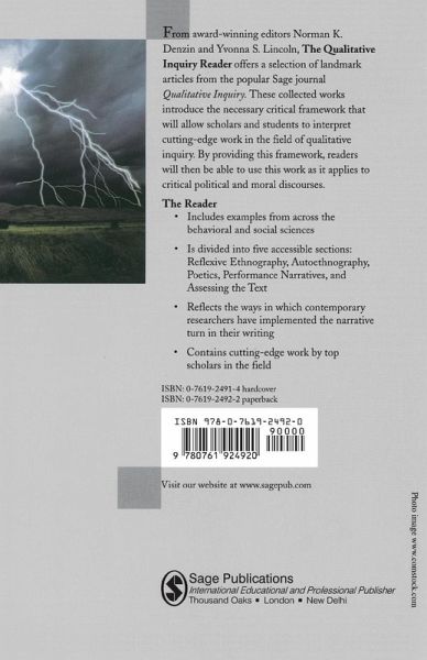 New from award winning editors Norman K. Denzin and Yvonna S. Lincoln, The Qualitative Inquiry Reader offers the best of the popular SAGE journal, Qualitative Inquiry. These collected works aim to introduce the necessary critical framework that will allow scholars and students scholars to interpret cutting edge work in the field of qualitative inquiry. By providing this framework, readers will then be able to use this work as it applies to critical political and moral discourses. Features: The book includes examples from across the behavioral and social sciences Reader is divided into five sections: Reflexive Ethnography, Autoethnography, Poetics, Performance Narratives, Assessing the Text, These sections reflect the ways in which contemporary researchers have implemented the narrative turn in their writing Contains cutting-edge work by top scholars in the field Introduces students and scholars to what's new in the field of qualitative inquiry