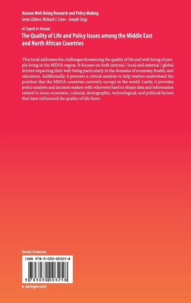 This book addresses the challenges threatening the quality of life and well-being of people living in the MENA region. It focuses on both internal / local and external / global drivers impacting their well-being particularly in the domains of economy, health, and education. Additionally, it presents a critical analysis to help readers understand the position that the MENA countries currently occupy in the world. Lastly, it provides policy analysts and decision makers with otherwise hard to obtain data and information related to socio-economic, cultural, demographic, technological, and political factors that have influenced the quality of life there.