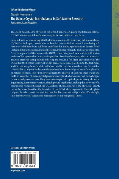 This book describes the physics of the second-generation quartz crystal microbalance (QCM), a fundamental method of analysis for soft matter at interfaces.