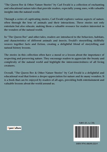 "The Queen Bee & Other Nature Stories" by Carl Ewald is a collection of enchanting and educational nature tales that provide readers, especially young ones, with valuable insights into the natural world. Through a series of captivating stories, Carl Ewald explores various aspects of nature, often through the lens of animals and their interactions. These stories not only entertain but also educate, making them a valuable resource for readers interested in the wonders of the natural world. In "The Queen Bee" and other tales, readers are introduced to the behaviors, habitats, and characteristics of different animals and insects. Ewald's storytelling skillfully weaves together facts and fiction, creating a delightful blend of storytelling and natural history lessons. The stories in this collection often have a moral or a lesson about the importance of respecting and preserving nature. They encourage readers to appreciate the beauty and complexity of the natural world and highlight the interconnectedness of all living creatures. Overall, "The Queen Bee & Other Nature Stories" by Carl Ewald is a delightful and educational read that fosters a deeper appreciation for nature and its many wonders. It is a book that can be enjoyed by readers of all ages, providing both entertainment and valuable lessons about the world around us.