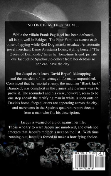 She wanted an easy case ... she got a disaster. Private eye Jacqueline Spadros, recovering from her harrowing experiences the week prior, wants nothing more than a simple, straightforward case - preferably one the Spadros Family won't find out about. Aristocratic jewel merchant Dame Anastasia Louis, aka "The Queen of Diamonds," seems to be offering the perfect arrangement. But Jacqui can't leave the madman "Black Jack" Diamond's crimes unpunished. And the more she learns, the more she begins to believe that this particular job wasn't such a good idea after all .... Warning: graphic descriptions of blood and gore, foul language, smoking, alcohol abuse ... about the same as the first book.