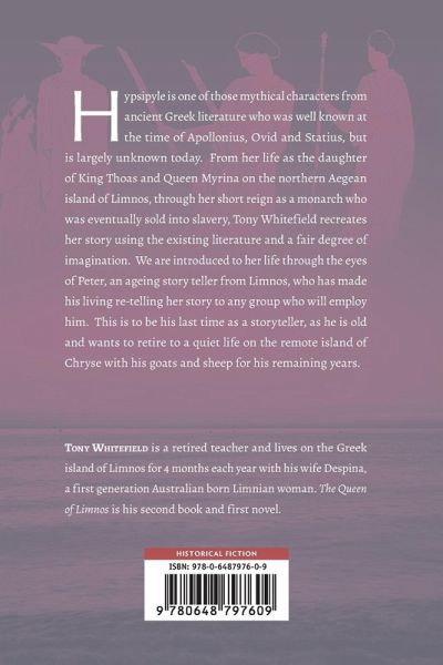 Hypsipyle is one of those mythical characters from ancient Greek literature who was well known at the time of Apollonius, Ovid and Statius, but is largely unknown today. From her life as the daughter of King Thoas and Queen Myrina on the northern Aegean island of Limnos, through her short reign as a monarch who was eventually sold into slavery, Tony Whitefield recreates her story using the existing literature and a fair degree of imagination. We are introduced to her life through the eyes of Peter, an ageing story teller from Limnos, who has made his living re-telling her story to any group who will employ him. This is to be his last time as a storyteller, as he is old and wants to retire to a quiet life on the remote island of Chryse with his goats and sheep for his remaining years.