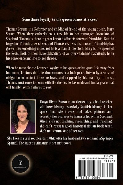 Sometimes loyalty to the queen comes at a cost. In The Queen's Almoner, Thomas Broune is a Reformer and childhood friend of the young queen, Mary Stuart. When Mary embarks on a new life in her estranged homeland of Scotland, Thomas is there to greet her and offer his renewed friendship. But the long-time friends grow closer, and Thomas realizes his innocent friendship has grown into something more. Yet he is a man of the cloth. Mary is the queen of the Scots. Both of them have obligations of an overwhelming magnitude; he to his conscience and she to her throne. When he must choose between loyalty to his queen or his quiet life away from her court, he finds that the choice comes at a high price. Driven by a sense of obligation to protect those he loves, and crippled by his inability to do so, Thomas must come to terms with the choices he has made and find a peace that will finally lay his failures to rest.