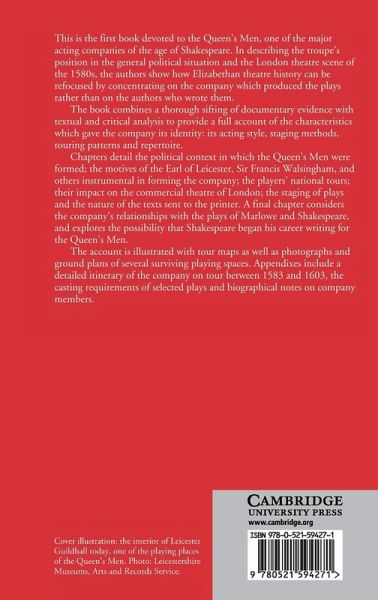 This is the first book devoted to the Queen's Men, one of the major acting companies of the age of Shakespeare. In describing the troupe's position in the general political situation and the London theatre scene of the 1580s, the authors break new ground by showing how Elizabethan theatre history can be refocused by concentrating on the company which produced the plays rather than on the authors who wrote them. The book combines a thorough examination of documentary evidence with textual and critical analysis, to provide a full account of the characteristics which gave the company its identity: its acting style, staging methods, touring patterns and repertoire. The conclusions will interest Elizabethan historians as well as students and scholars of early modern theatre.
