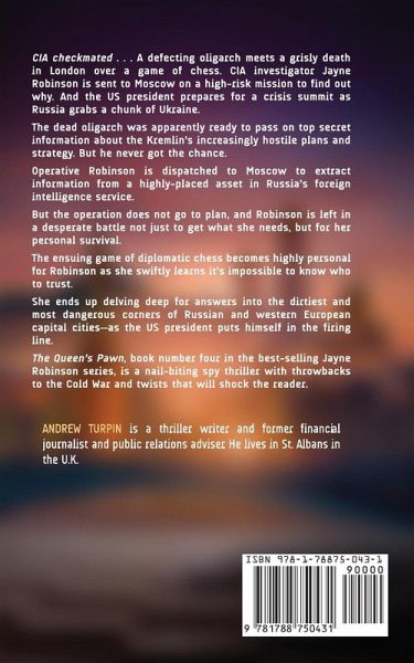 CIA checkmated . . . a defecting oligarch meets a grisly death in London over a game of chess. CIA investigator Jayne Robinson is sent to Moscow on a high-risk mission to find out why. And the US president prepares for a crisis summit as Russia grabs a chunk of Ukraine. The dead oligarch is apparently ready to pass on top secret information about the Kremlin's increasingly hostile plans and strategy. But he never gets the chance. Jayne Robinson is dispatched to Moscow to extract information from a highly-placed asset in Russia's foreign intelligence service. But the operation does not go to plan, and Robinson is left in a desperate battle not just to get what she needs, but for her personal survival. The ensuing game of diplomatic chess becomes highly personal for Robinson as she swiftly learns it's impossible to know who to trust-either on the other side, or on her own. She ends up delving deep for answers into the dirtiest and most dangerous corners of Russian and western European capital cities-as the US president fights to save his career. The Queen's Pawn, book number four in the best-selling Jayne Robinson series, is a nail-biting spy thriller with throwbacks to the Cold War and twists that will shock the reader.