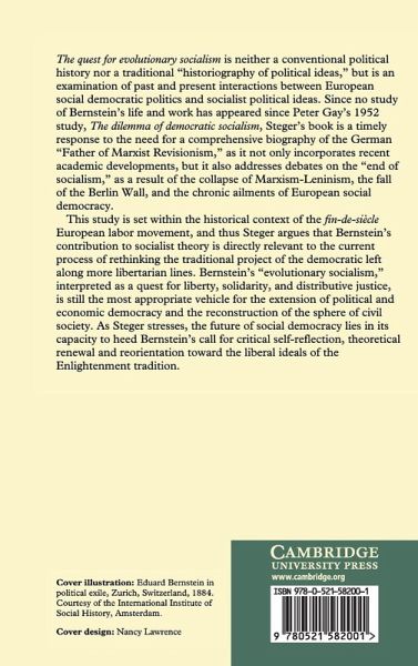 The Quest for Evolutionary Socialism uses Eduard Bernstein's life and works as the basis for an examination of the interactions between European social democratic politics and socialist political ideas. It is thus a timely response to the need for a new, comprehensive biography of Bernstein, the German 'Father of Marxist Revisionism'. Professor Steger incorporates recent academic developments and addresses current debates on the 'End of Socialism' resulting from the collapse of Marxism-Leninism and the chronic ailments of European social democracy. This study is set within the historical context of the European labour movement and thus Steger interprets Bernstein's 'Evolutionary Socialism' as an ethically motivated quest for liberty, solidarity and distributive justice. Steger stresses that the future of social democracy depends on its ability to heed Bernstein's call for critical self-reflection and to reorientate towards more liberal ideals.